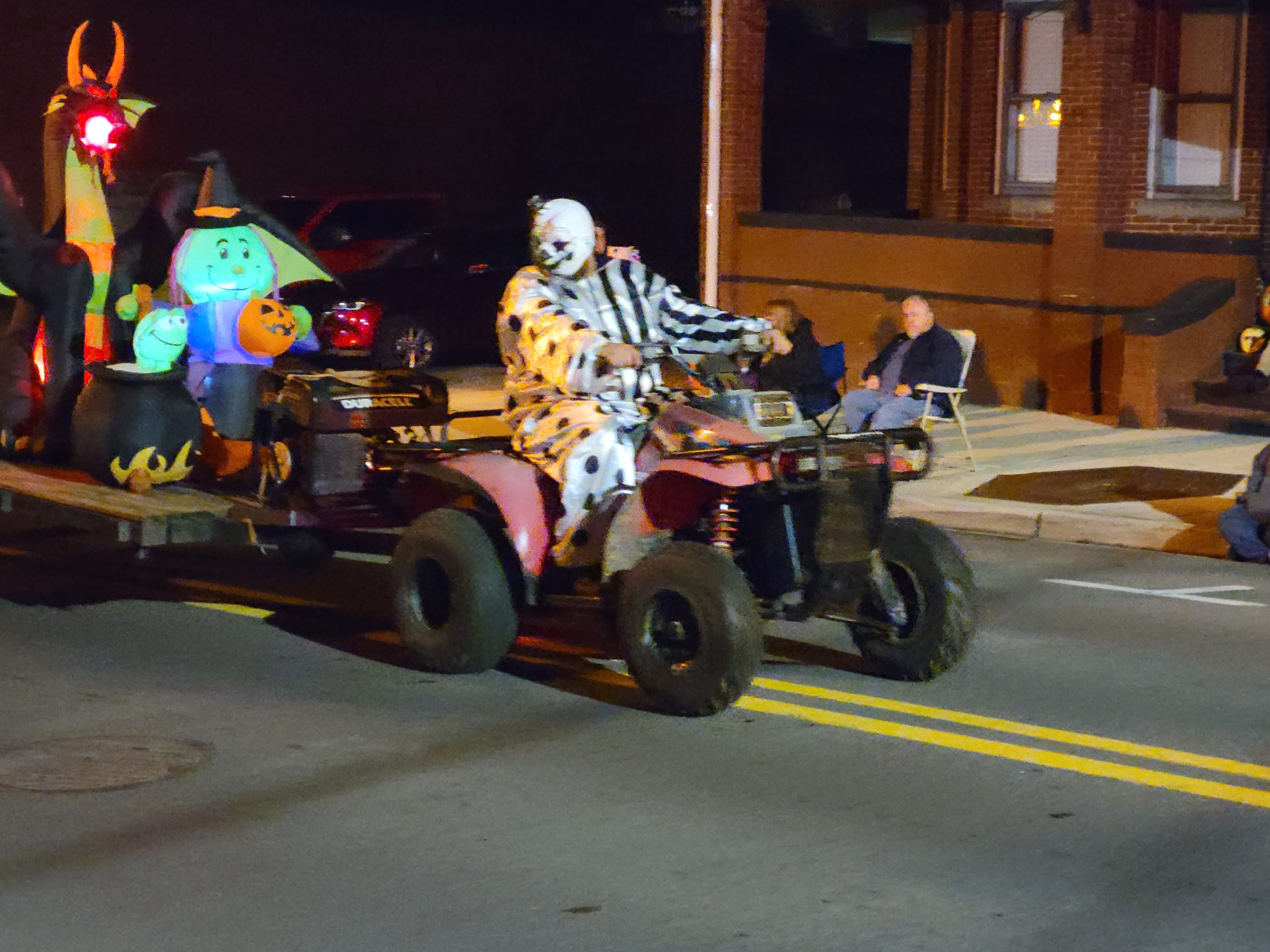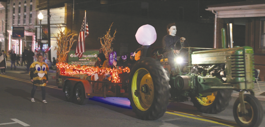 Michael Myers took a break from his normal Halloween activities to drive a tractor with Girl Scout Troop #80338 in tow with their “Spooky Scouts” float.