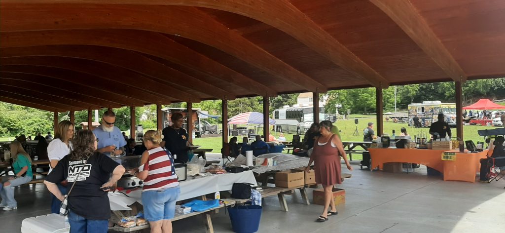 Hamburgers, hot dogs, cotton candy, homemade baked goods, and fresh-squeezed lemonade were available under the large wooden pavilion.
