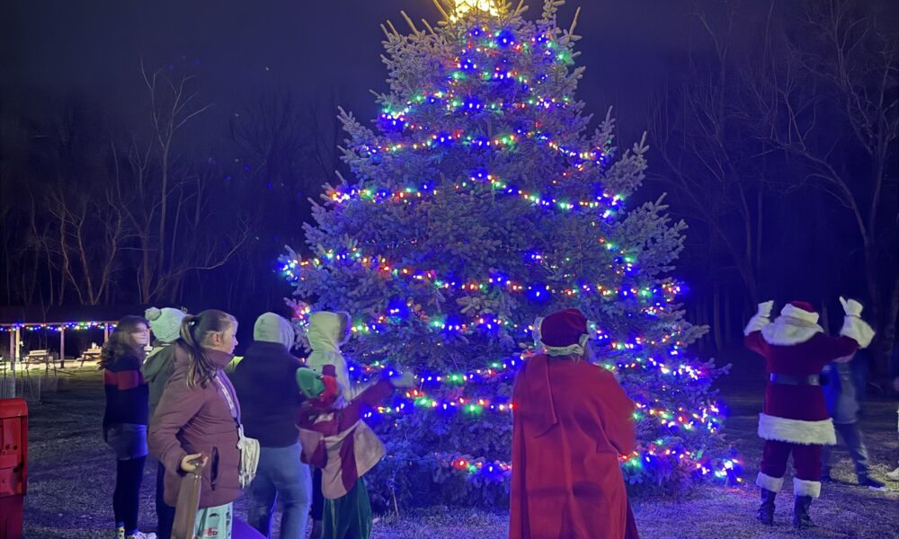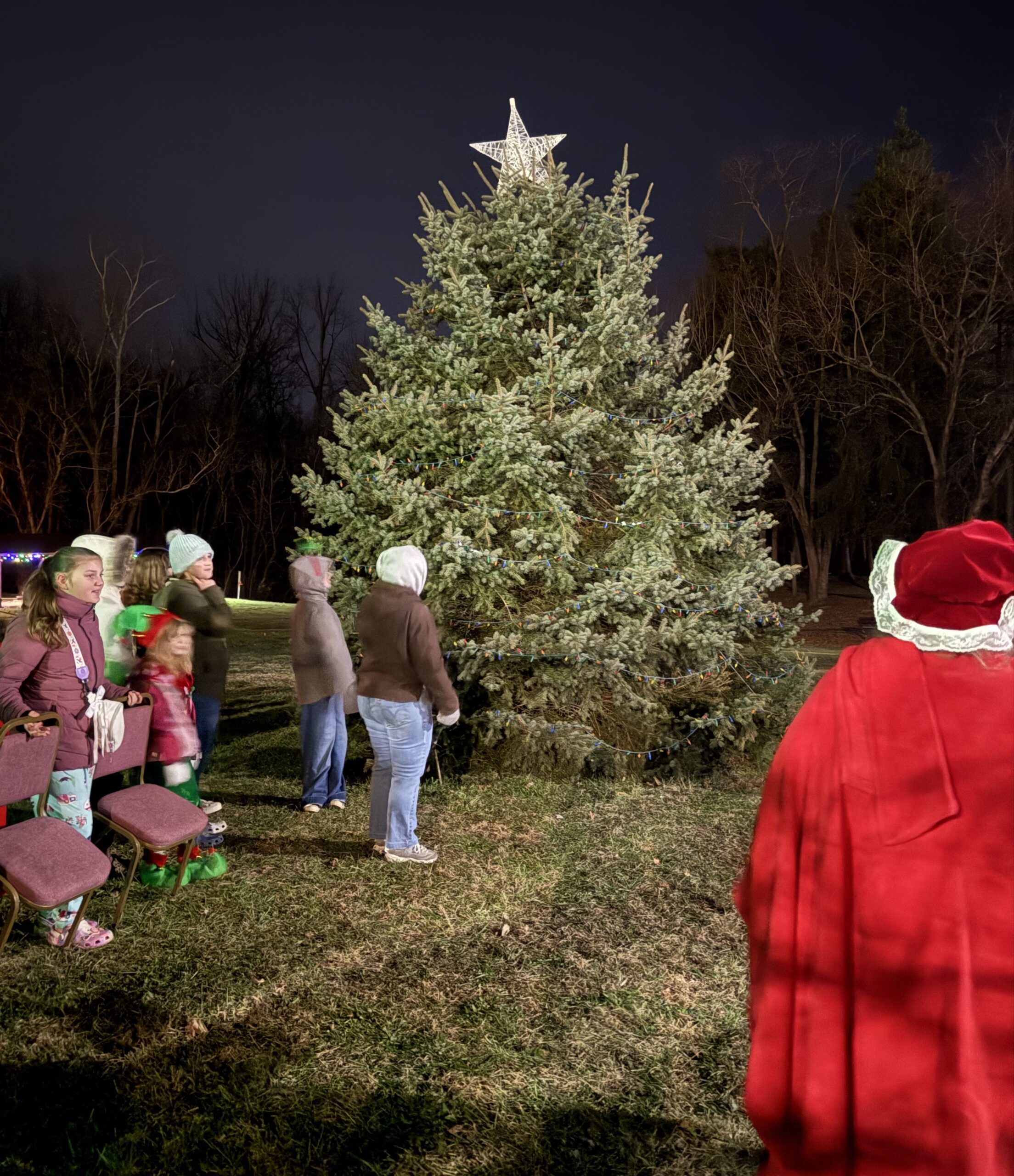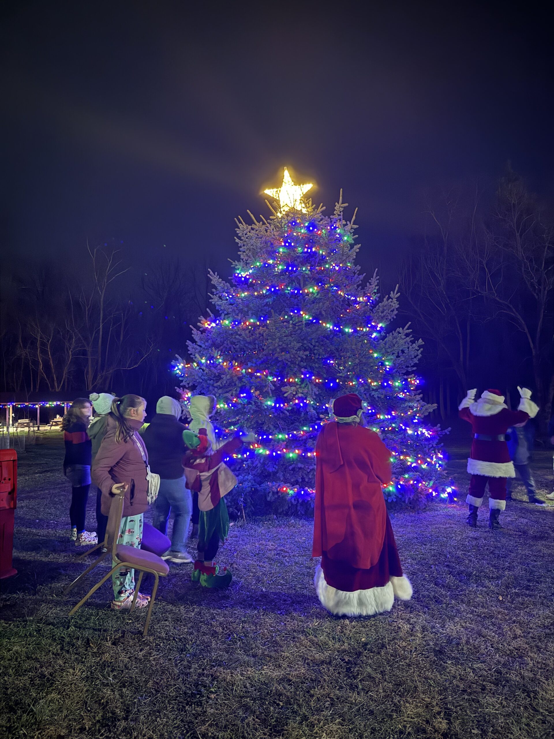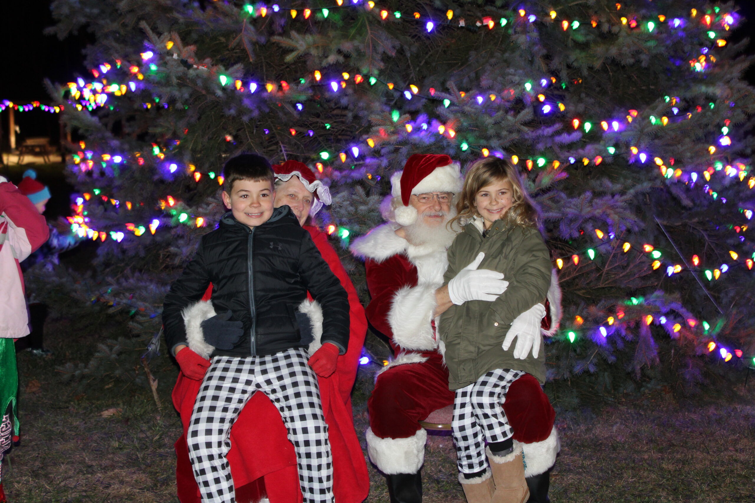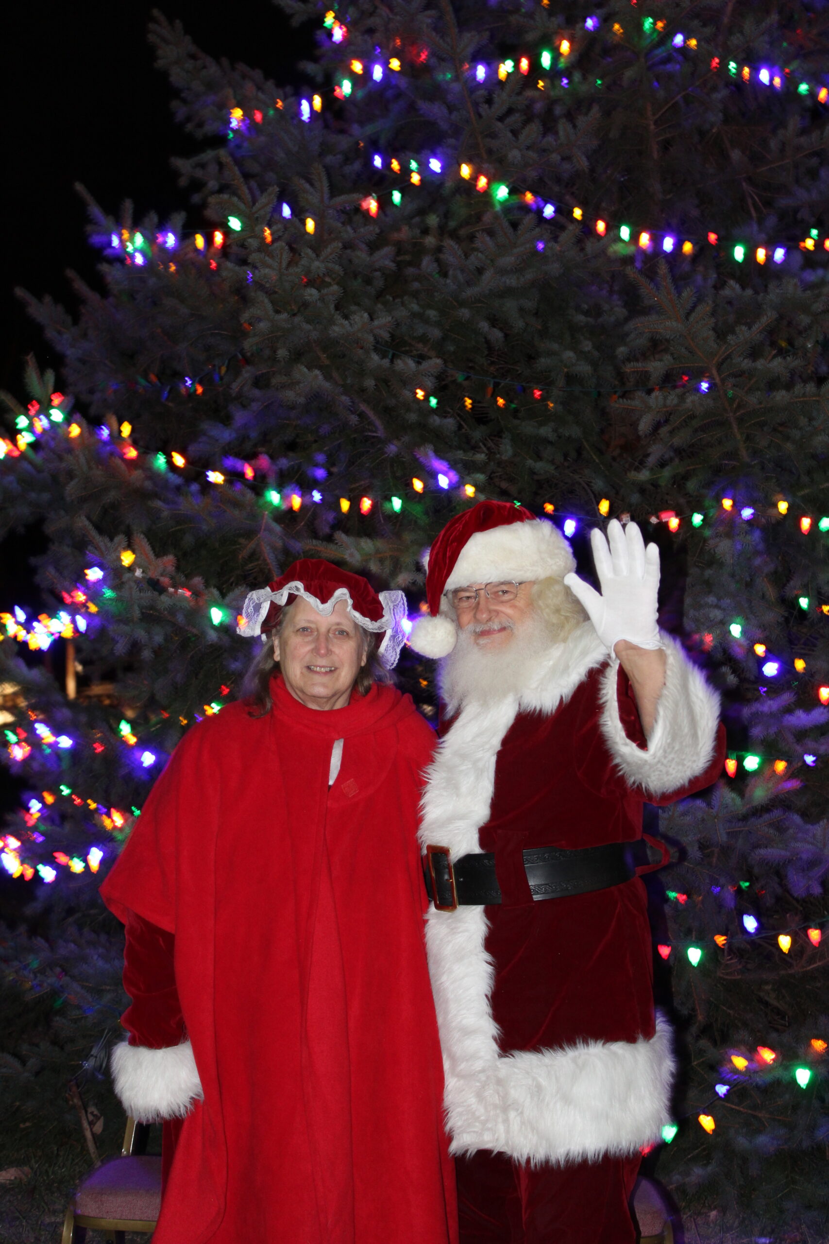 The evening closed around the town’s Christmas tree in Joseph Hancock Park with caroling, lights and the arrival of Santa and Mrs. Claus to greet youngsters and their families.