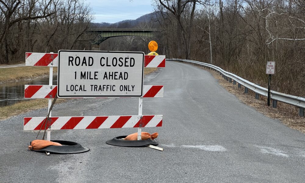 Berm Road remains barricaded closed as environmental inspectors continue to monitor discharge from a spring following pipeline drilling in the area.