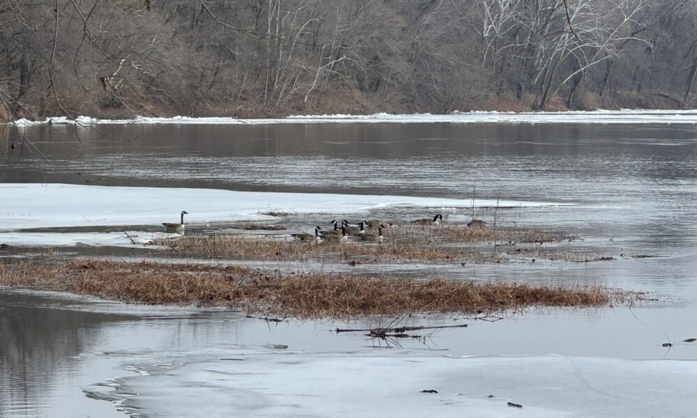 As temperature start to get back to normal, icy remnants of the Arctic blast from a couple weeks ago are still floating out on the Potomac River. On Monday, these Canadian geese didn’t seem to mind as they look for something to eat.